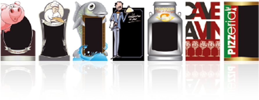 Une collection unique de supports pour votre commerce (chevalet de trottoir, oriflamme, stop vitrine) pour optimiser la visibilité de votre magasin. Ils peuvent être personnalisés selon l'identité visuelle de votre entreprise ou bien notre studio graphique peut vous réaliser une création exclusive. Alors n'attendez plus, découvrez le catalogue avec plus de 300 références auprès de votre conseiller PSM.